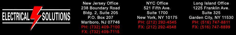 WelcomeWe have been serving the needs of the metro New York and New Jersey for over 10 years. It's our belief that delivering superior, efficient electrical services takes knowledge and craftsmanship. Electrical Solutions is proud of the projects our customers have entrusted to us. Our projects range from small tenant fit-outs to big box retail clients. Our MissionTo provide our customers with the utmost professionalism and personal attention. We have the ideas and solutions that you have been looking for. more» Retail & Office Specialists